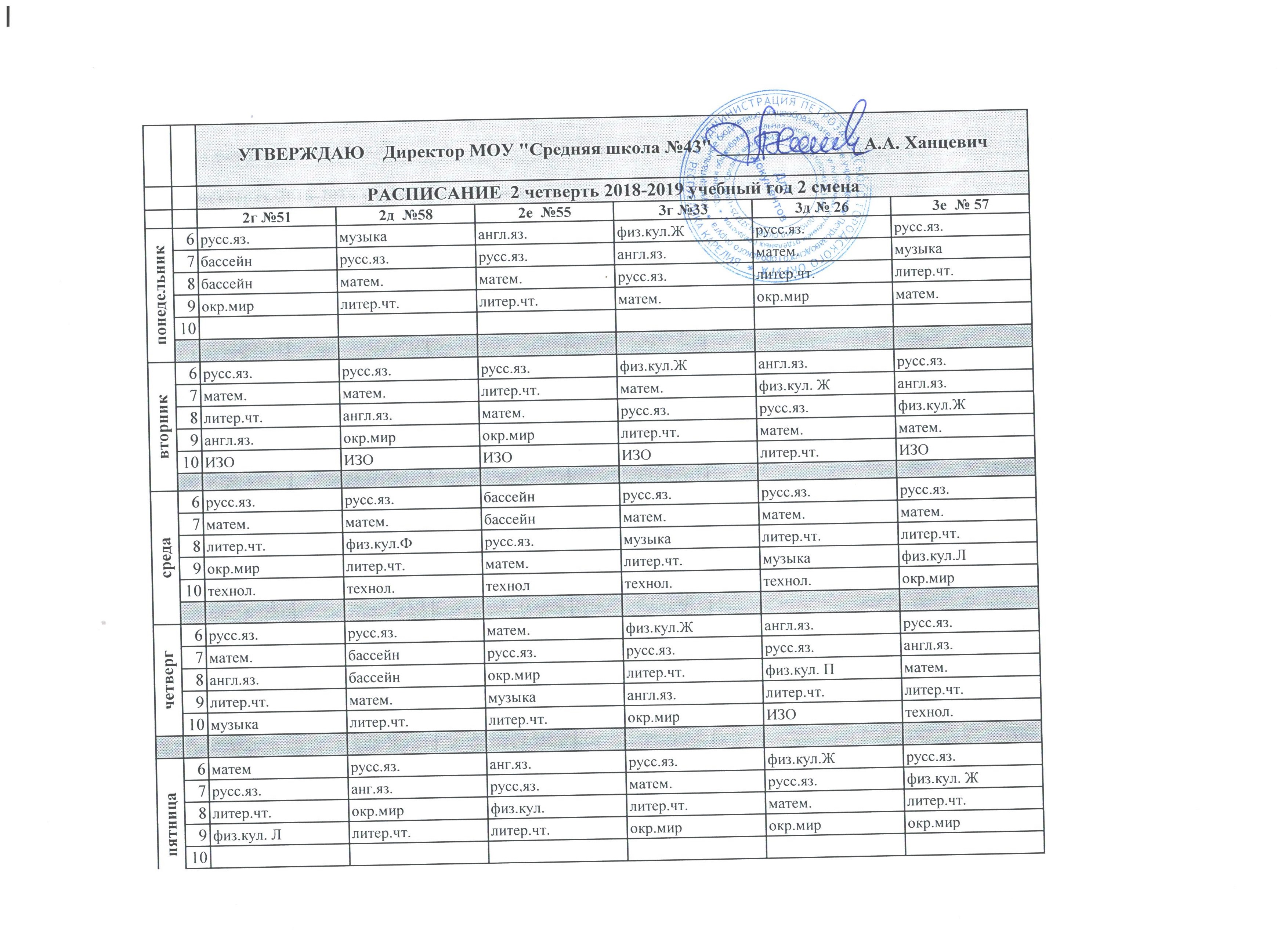 Расписание для начальной школы (2 смена) доступно по ссылке.