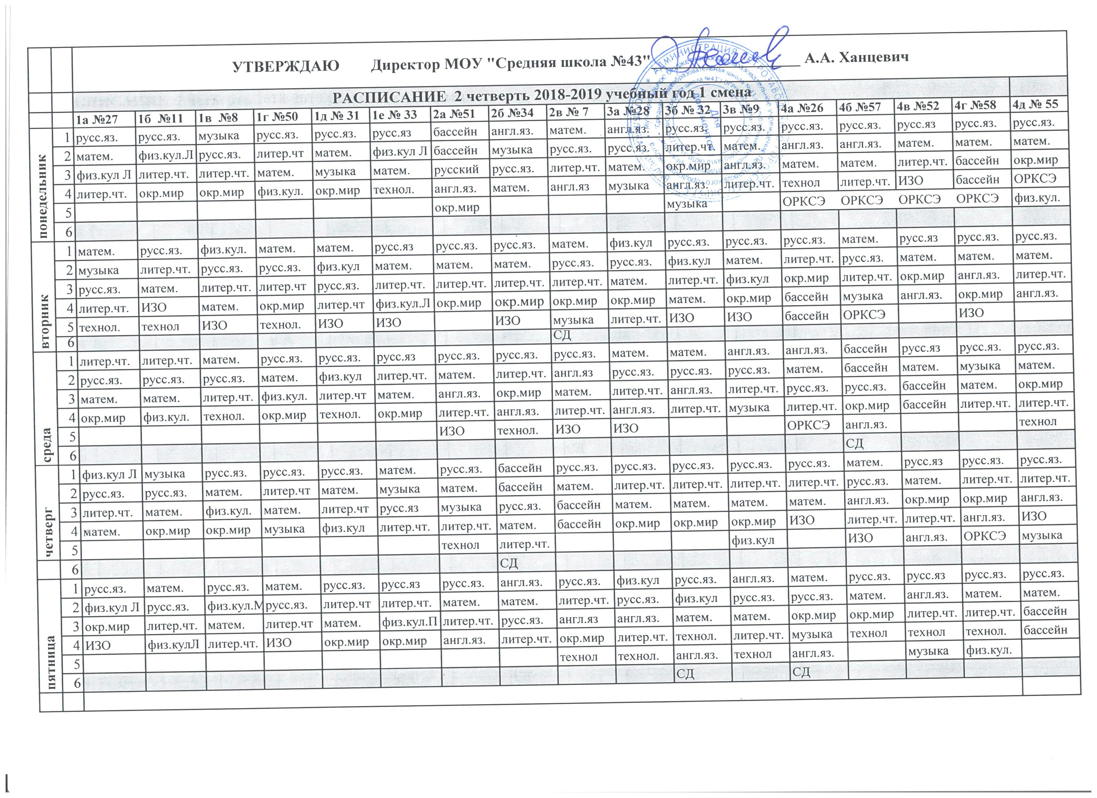 Расписание для начальной школы (1 смена) доступно по ссылке.
