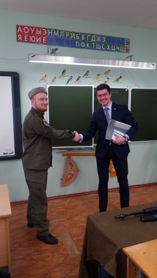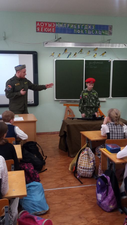 12 февраля в 4 «А» классе состоялась встреча с руководителем Карельского Казачьего юнармейского отряда, приуроченная ко Дню защитника Отечества. Наур Наурузович рассказал ребятам о подвигах героев военных лет, о патриотизме и об истории нашей Великой страны.