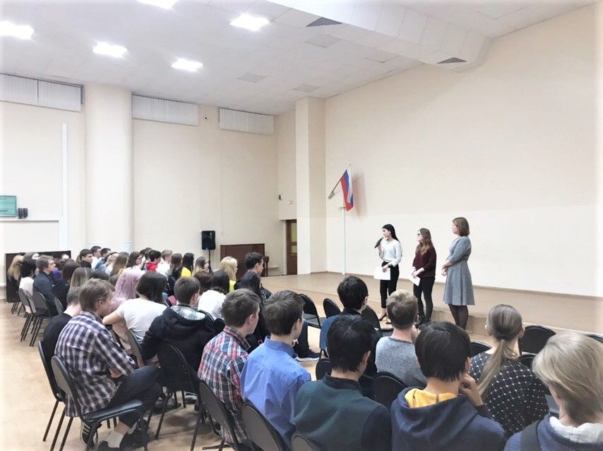 В рамках "Встречи с интересными людьми" для 10-11 классов была проведена Акция "100 баллов для победы", где выступали Аверкиева Елена Юрьевна (начальник отдела Министерства образования Республики Карелия), Лавренова Александра Альфредовна (пресс-секретарь Министерства образования Республики Карелия), Басова Вера Николаевна (студентка выступающая), Лебедева Полина Дмитриевна (студентка, выступающая).