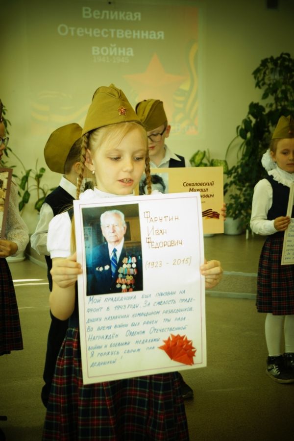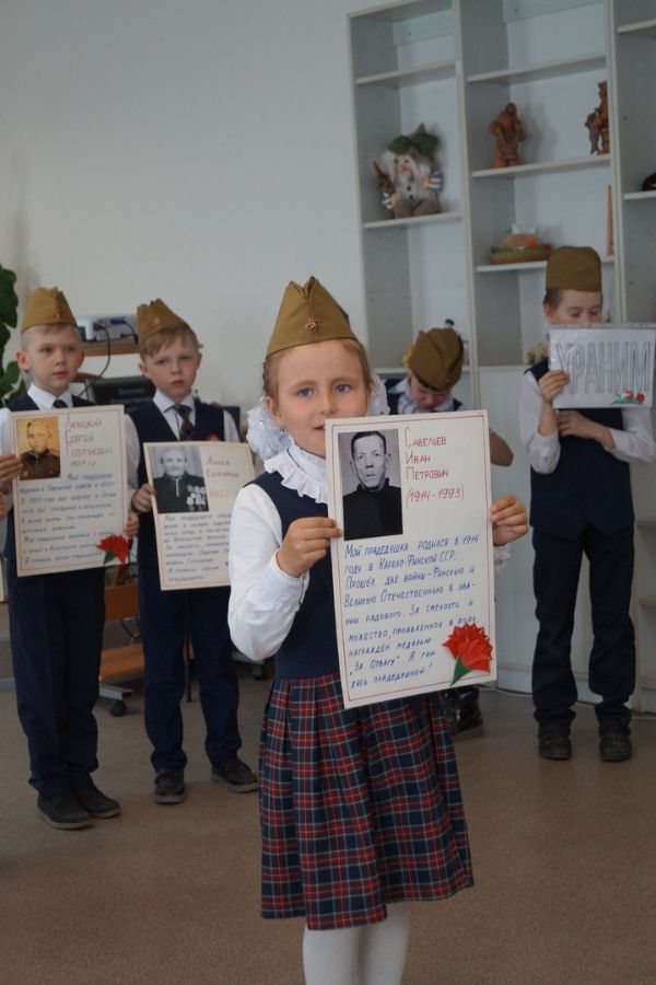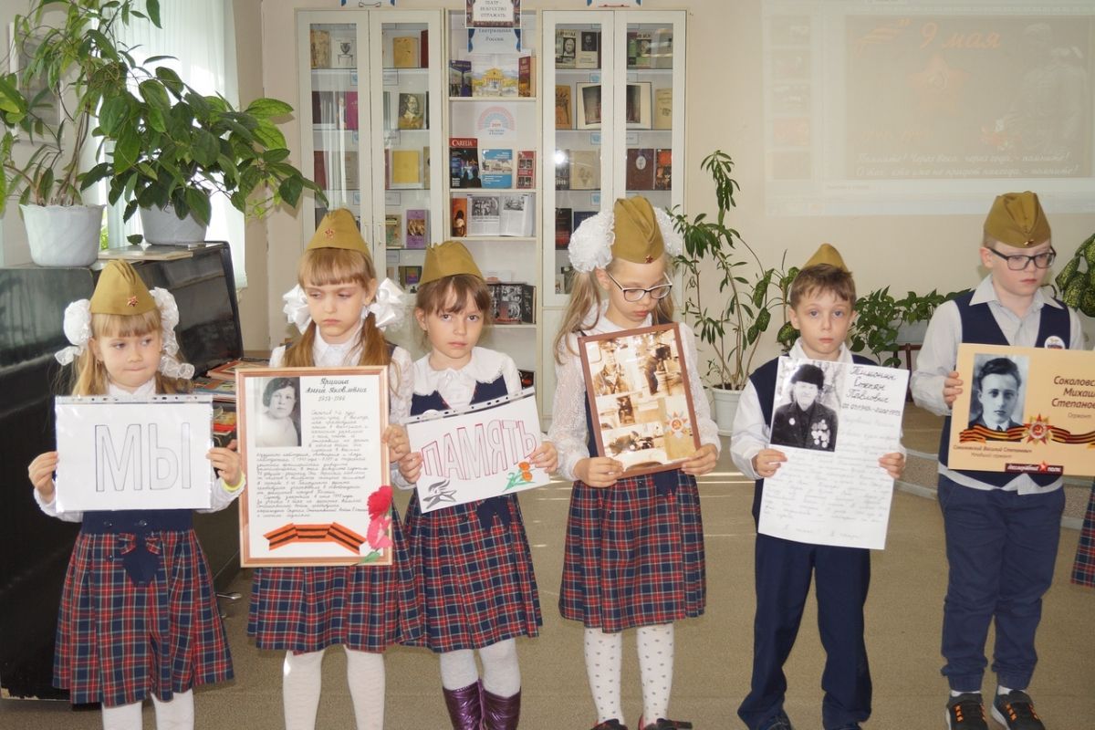25 апреля 1 "Д" класс (кл. руководитель Неделина О.Г.) представил свой проект "Мы память верную храним" в Библиотеке 22. Ребята рассказали о своих прадедушках и прабабушках, участвовавших в Великой Отечественной войне.