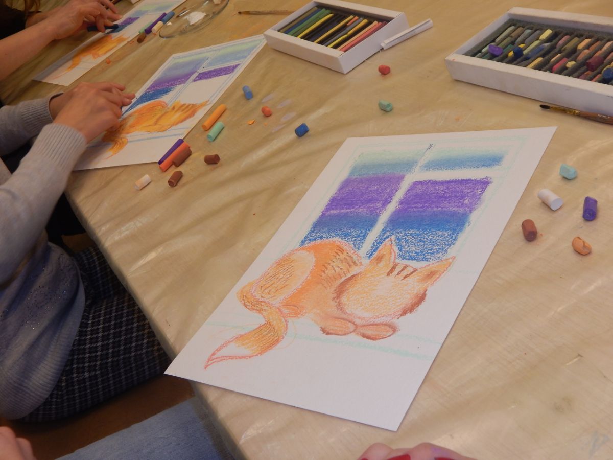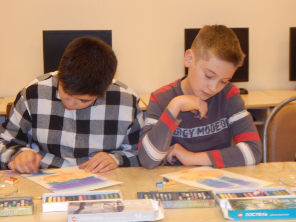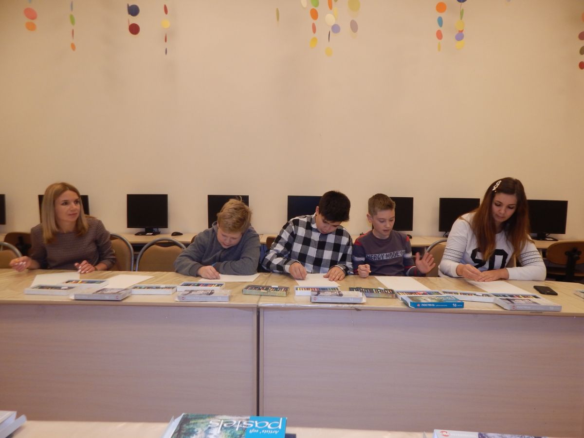 6 ноября ученики 5 «А» и 5 «Б» классов приняли участие в увлекательном мастер-классе «Рисуем с художником». Вместе с ребятами за восковые мелки взялись и их родители и классный руководитель 5 «Б» класса Екатерина Александровна Быкова.