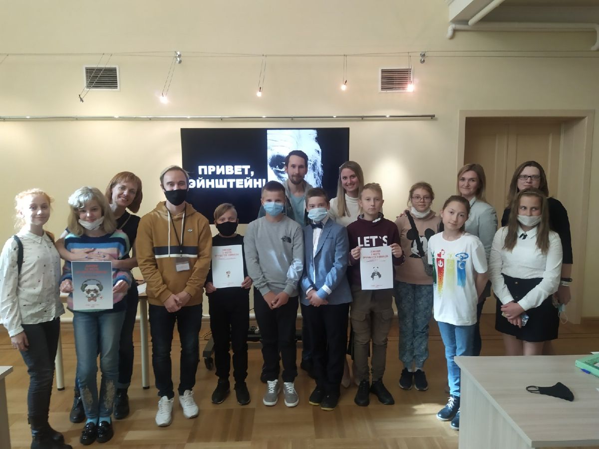 Сегодня 6 «А» вместе с родителями и классным руководителем Ложкиной Анастасией Олеговной приняли участие в командно-интеллектуальном квизе «Привет, Эйнштейн». Он прошёл в Национальной библиотеке Карелии.