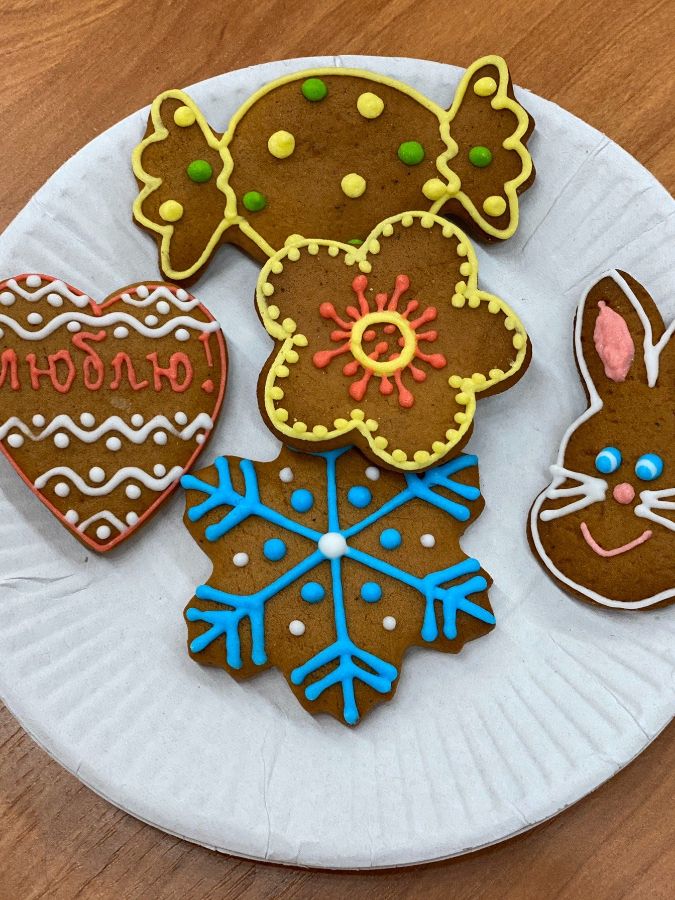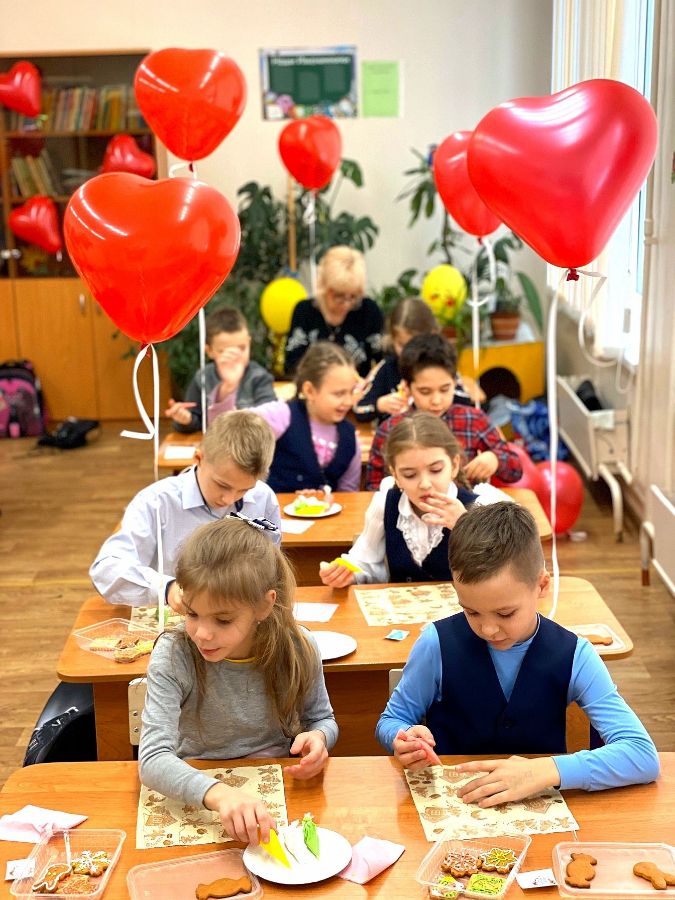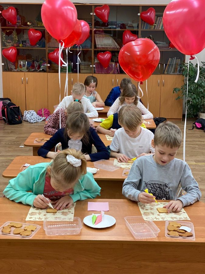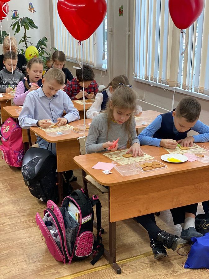 Ученики 2 «Б» класса и их классный руководитель Жанна Мирославовна 14 февраля приняли участие в мастер-классе по украшению печенья «Архангельские козули».