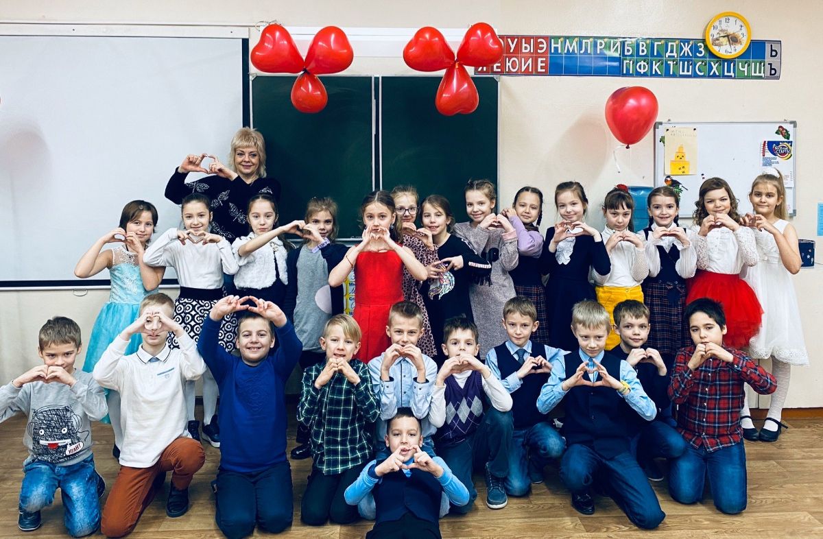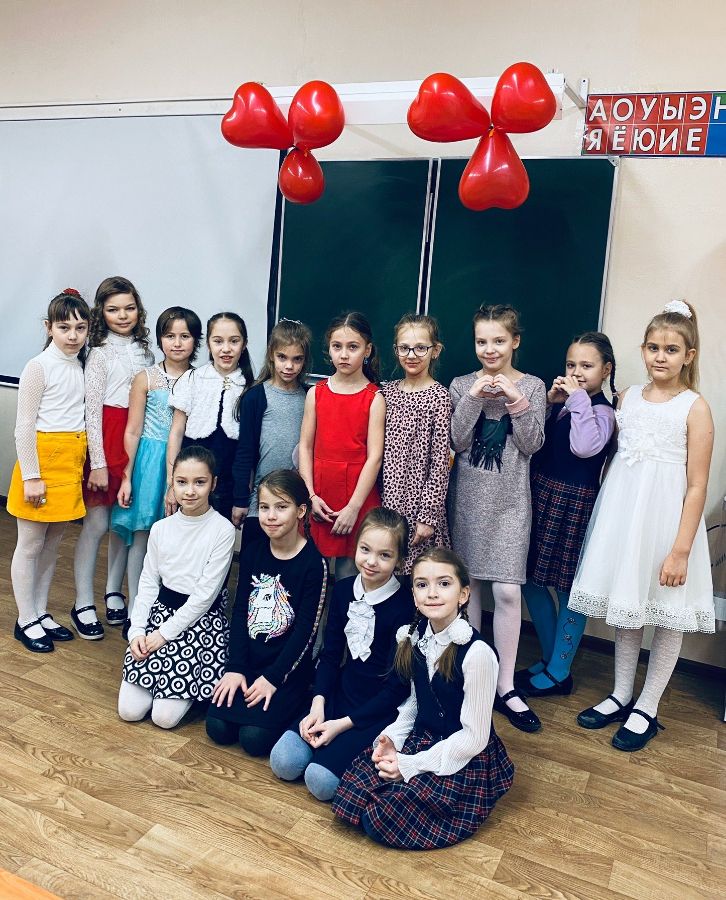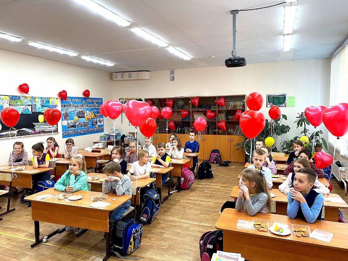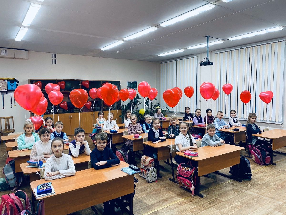 Родительский комитет подготовился заранее и сделал детям еще один сюрприз на День святого Валентина. Утром класс был украшен красивыми красными шарами в виде сердечек.