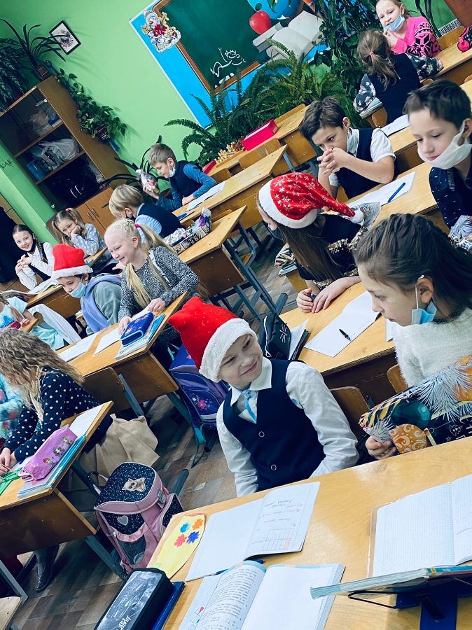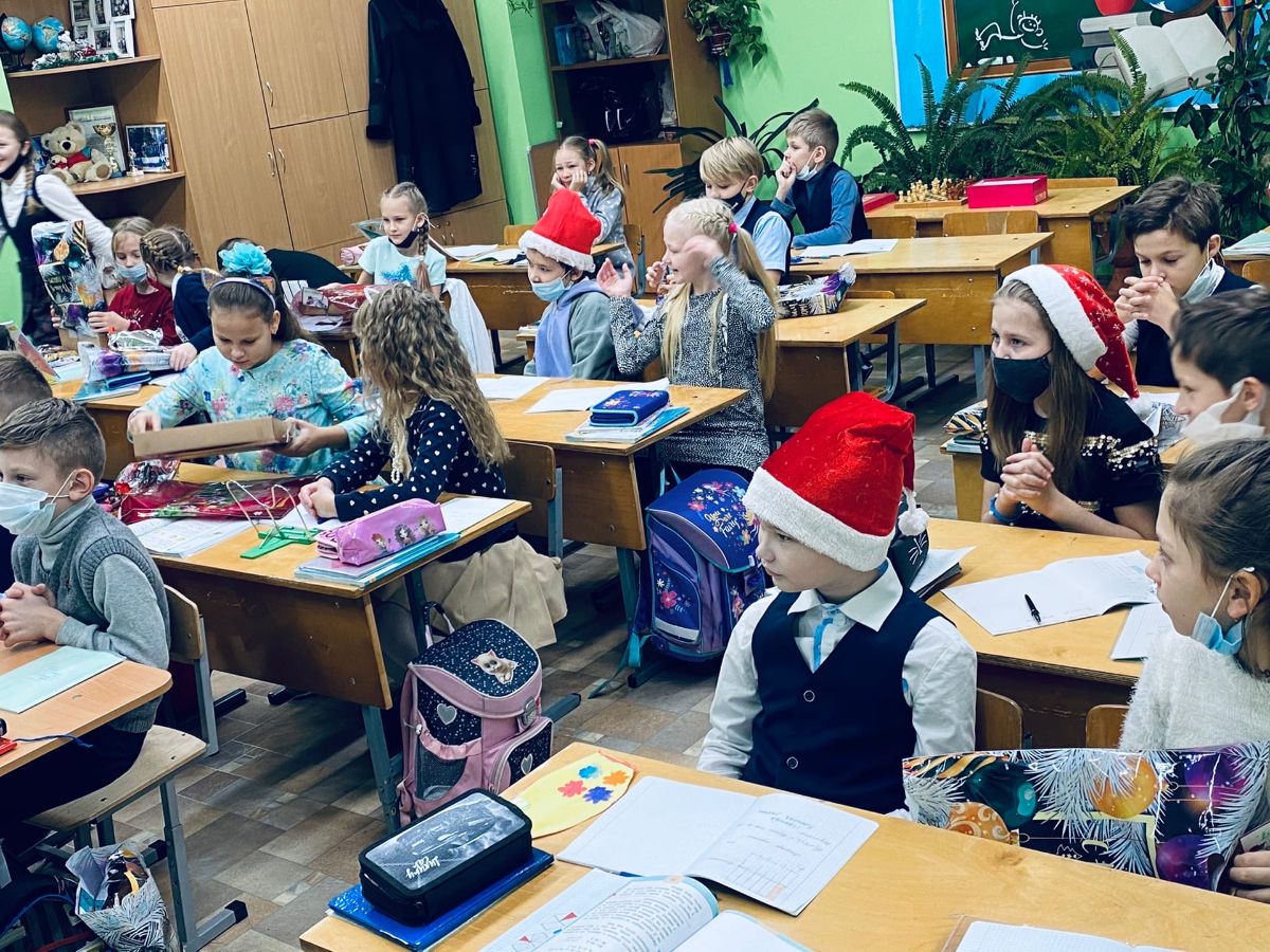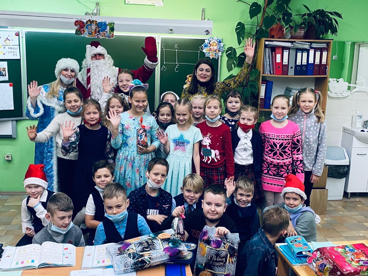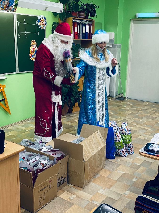Но новогоднее настроение у учеников нашей школы уже сейчас. Как иначе, когда с самого утра приходят в гости Дед Мороз и Снегурочка и дарят подарки?