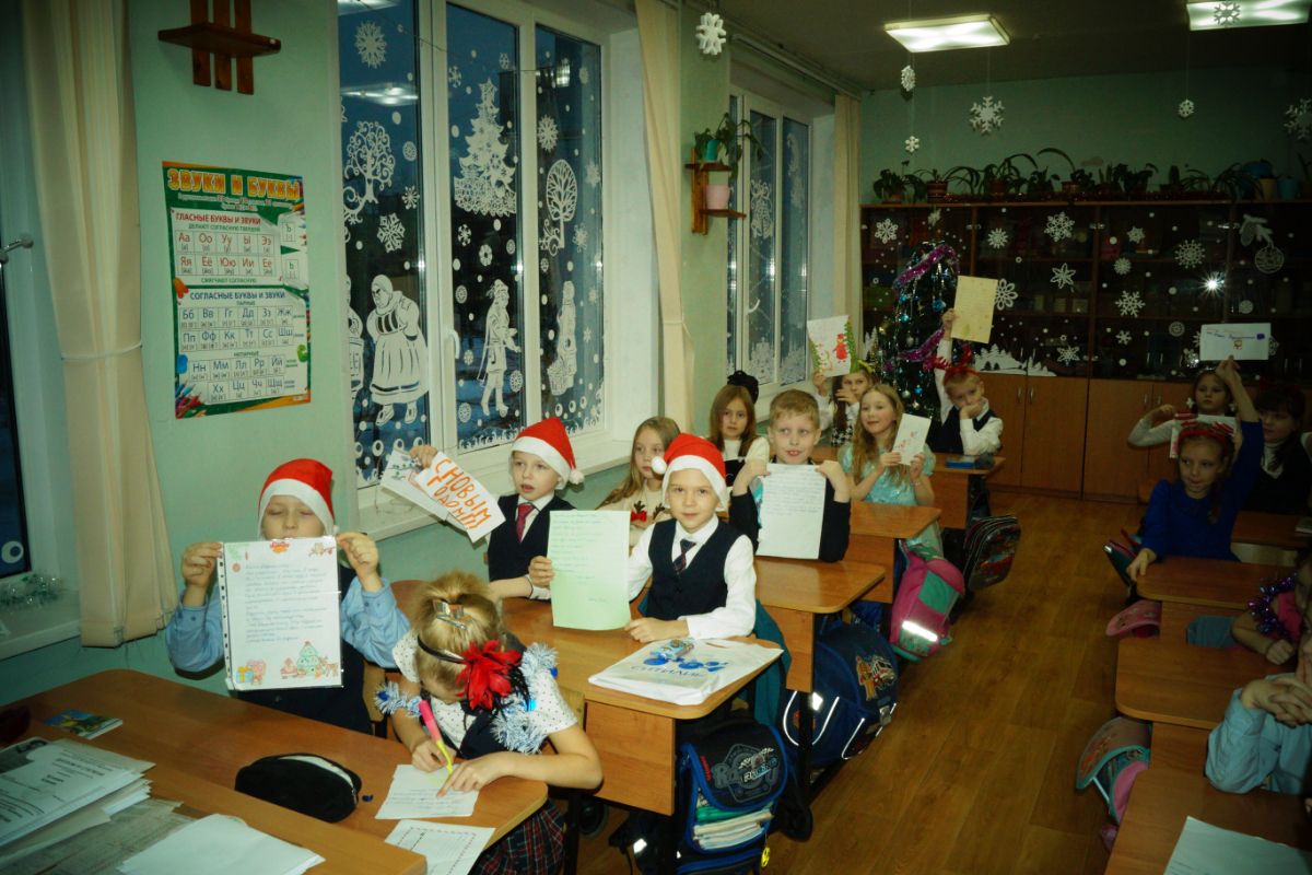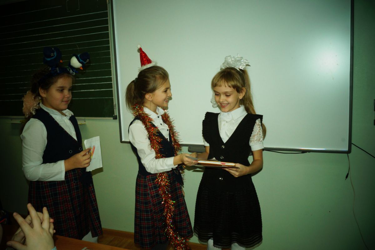 Ольга Геннадьевна вручала новогодние грамоты и дневники с оценками за 2-ю четверть. Для каждого ученика она нашла добрые слова и пожелала новых успехов в учебе.
