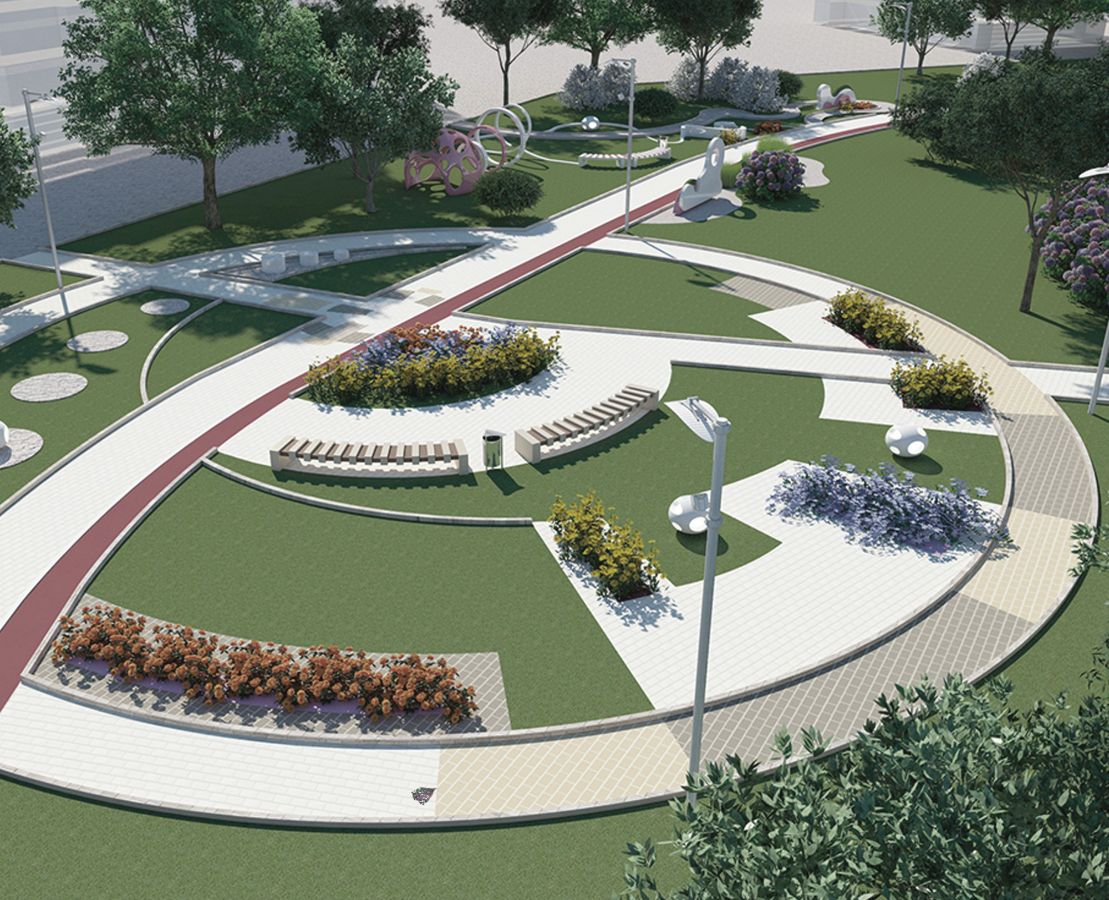 - Обустройство аллеи выпускников с установкой бетонных вазонов и устройство пешеходных дорожек;