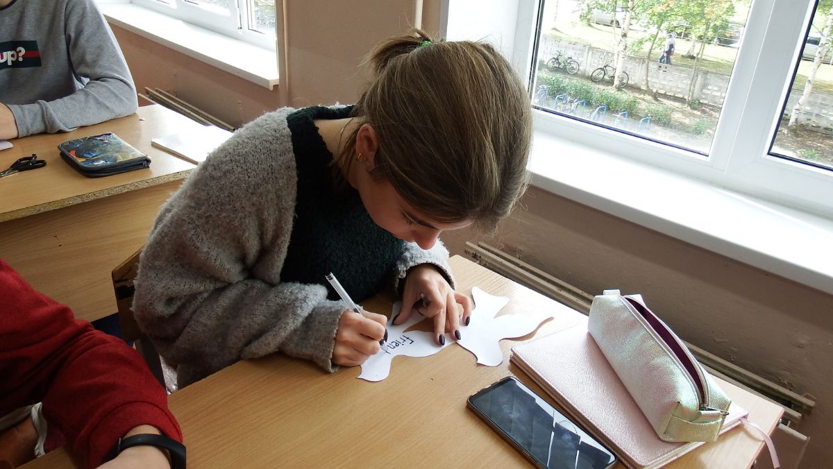 Проект создан некоммерческим фондом «Новое образование» при поддержке Администрации Петрозаводского городского округа. В рамках реализации проекта учащиеся посетили занятие, на котором подготовили и провели классный час о Международном дне мира, изготовили плакаты и голубей, написали пожелания добра, благополучия, мира на разных языках.