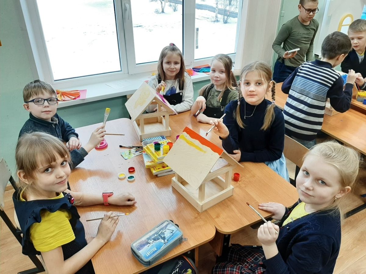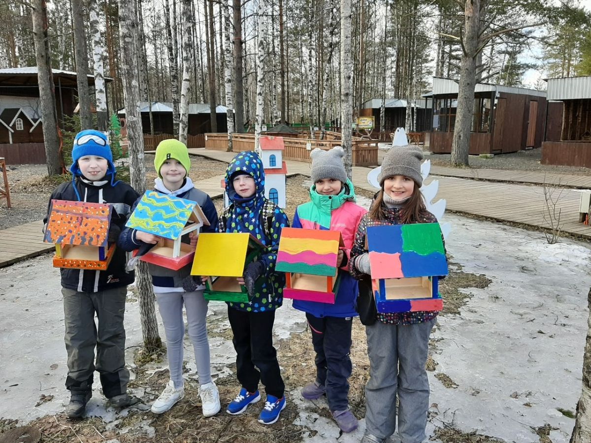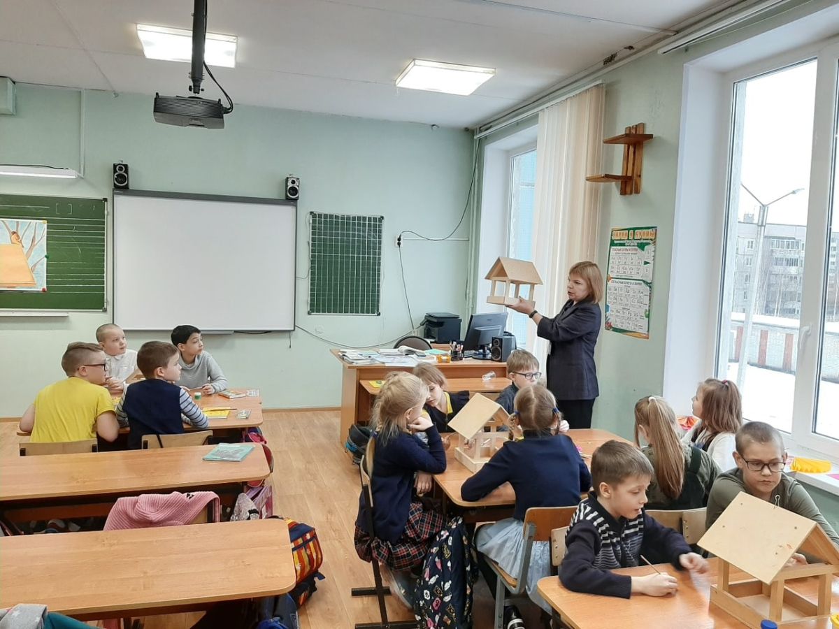 На уроке внеурочной деятельности ребята раскрасили кормушки, сделанные родителями, а потом подарили их экопарку «Зоолесье».