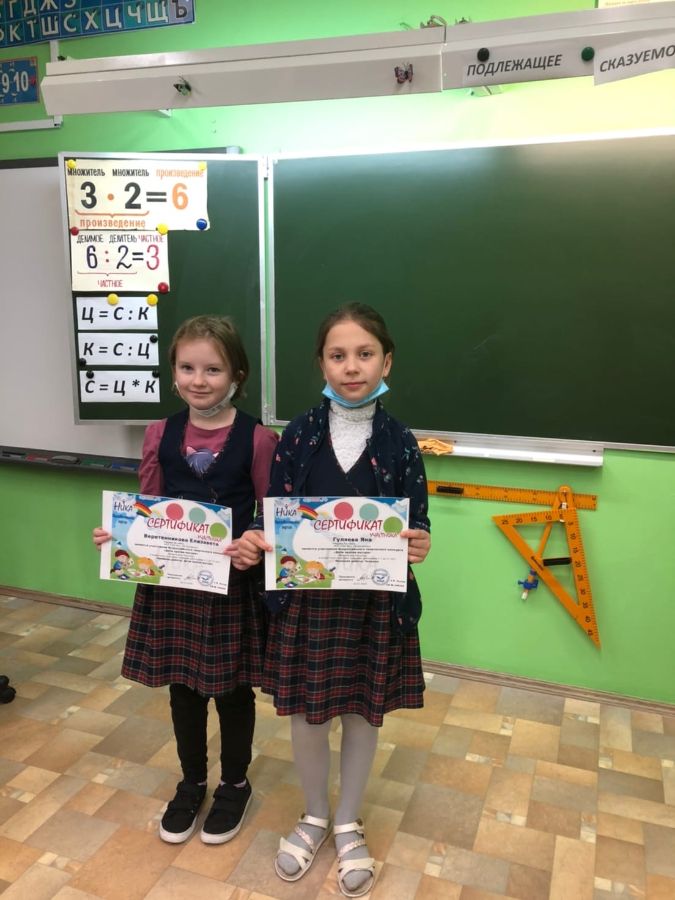 Сертификатами за участие награждены ученицы 3 «А» класса Гуляева Яна и Веретенникова Елизавета.
