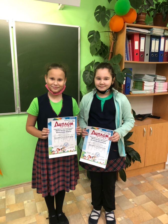 Поздравляем с победой во Всероссийском творческом экологическом конкурсе «Дети против мусора» в номинации «Рисунок» учениц 3 «А» класса Малышеву Дарью и Астахову Елизавету.