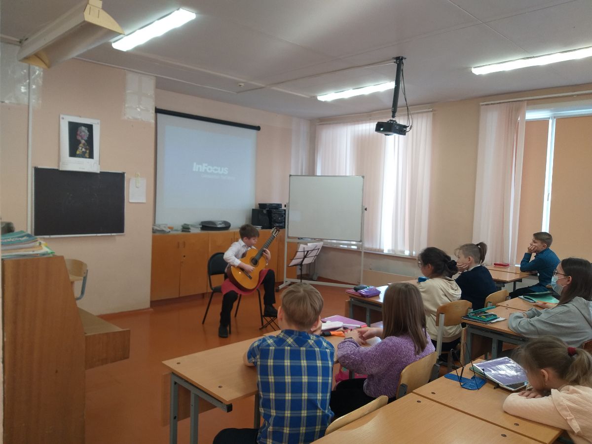 Григорий исполнил несколько произведений, среди которых "Астурия" испанского композитора (1860-1909) Исаака Альбениса в переложении для гитары Андреса Сеговии. Примечательно, что учащиеся 5 "А" узнали эту мелодию, и это было особенно приятно. Мы слушали звуки гитары, затаив дыхание. Музыка звучала то нежно и певуче, то взволнованно и страстно.