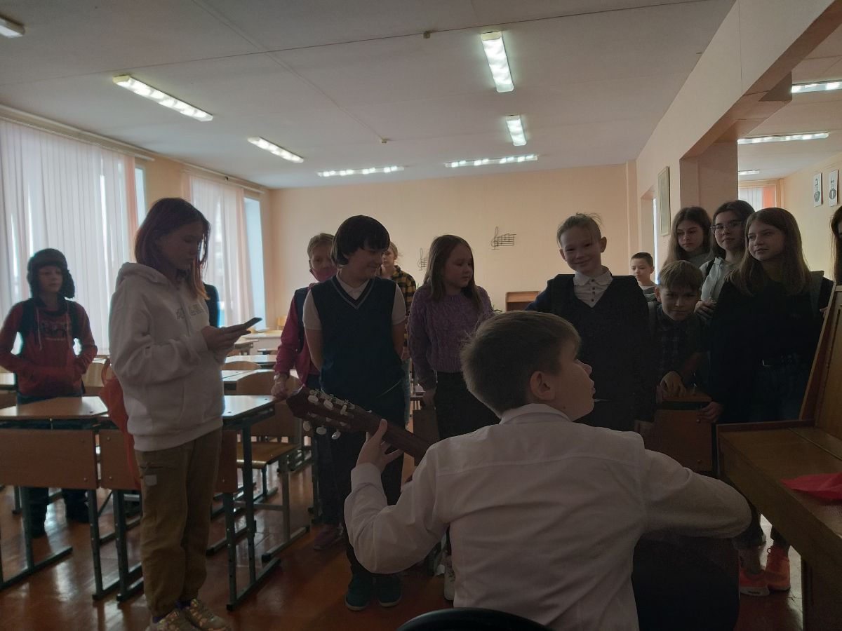 Ребята внимательно и с интересом слушали о том, что уже в 13 веке гитара была широко известна в Испании, но в 14 ее на время вытеснила лютня. Однако к началу 19 века гитара снова вошла в моду как полноценный солирующий инструмент.